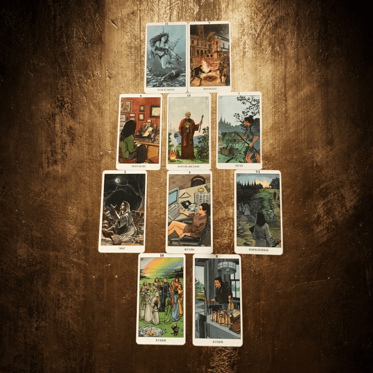 ⠀🔟 — потенциальный итог — Влюбленные — очень говорящая карта в подобного рода раскладах, которая показывает, что личное счастье зависит от ее выбора и говорит о большой вероятности появления отношений