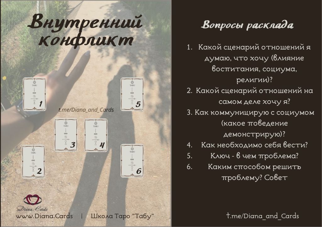 Испытывая трудности в личной или социальной жизни, мы хотим решить проблему и боремся с последствиями — с симптомами. Но по-настоящему решить проблему можно лишь поняв ее причины, истоки. Данный расклад — один из тех, что поможет вам увидеть проблему глубже и даст пищу для размышлений над тем — как нужно изменить способ действий (сценарий), чтобы проблема ушла и больше не повторялась.