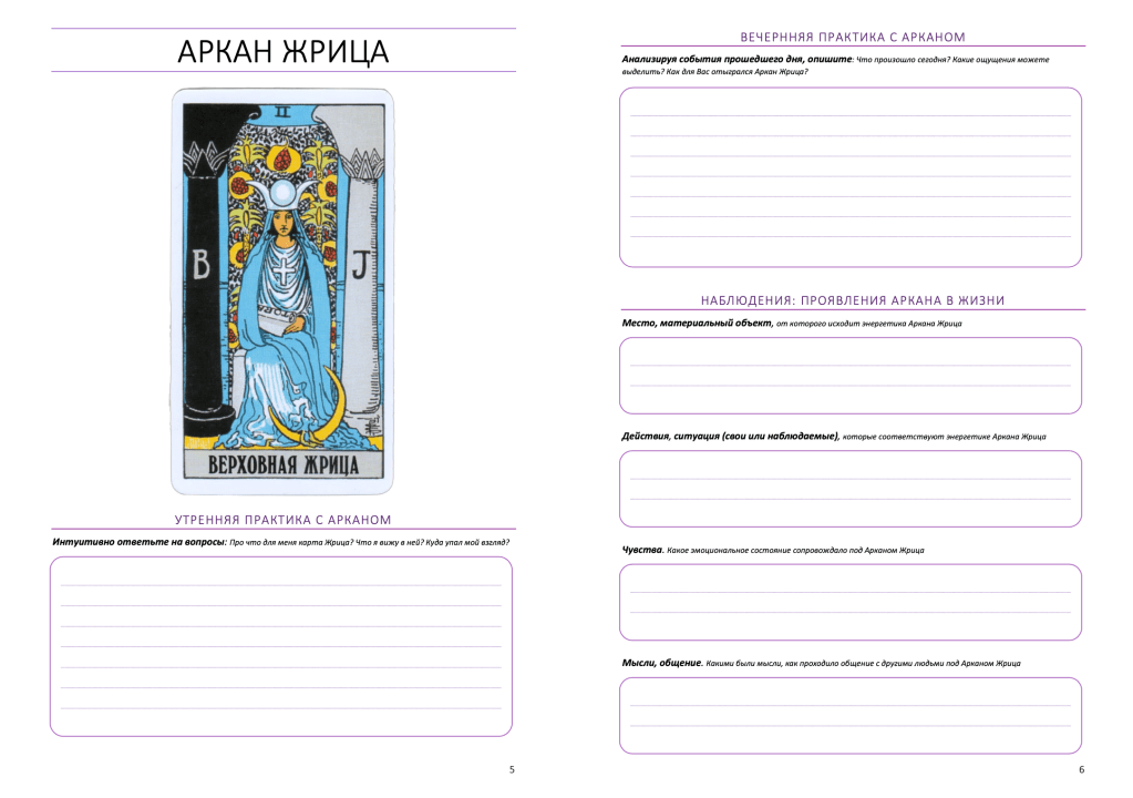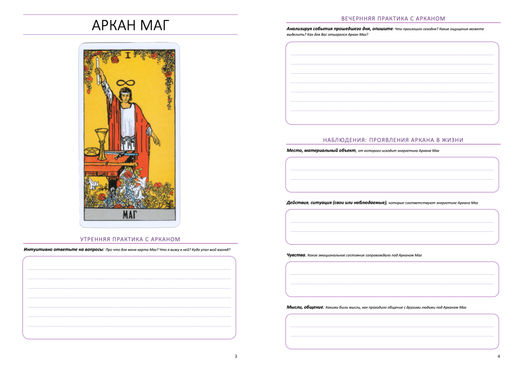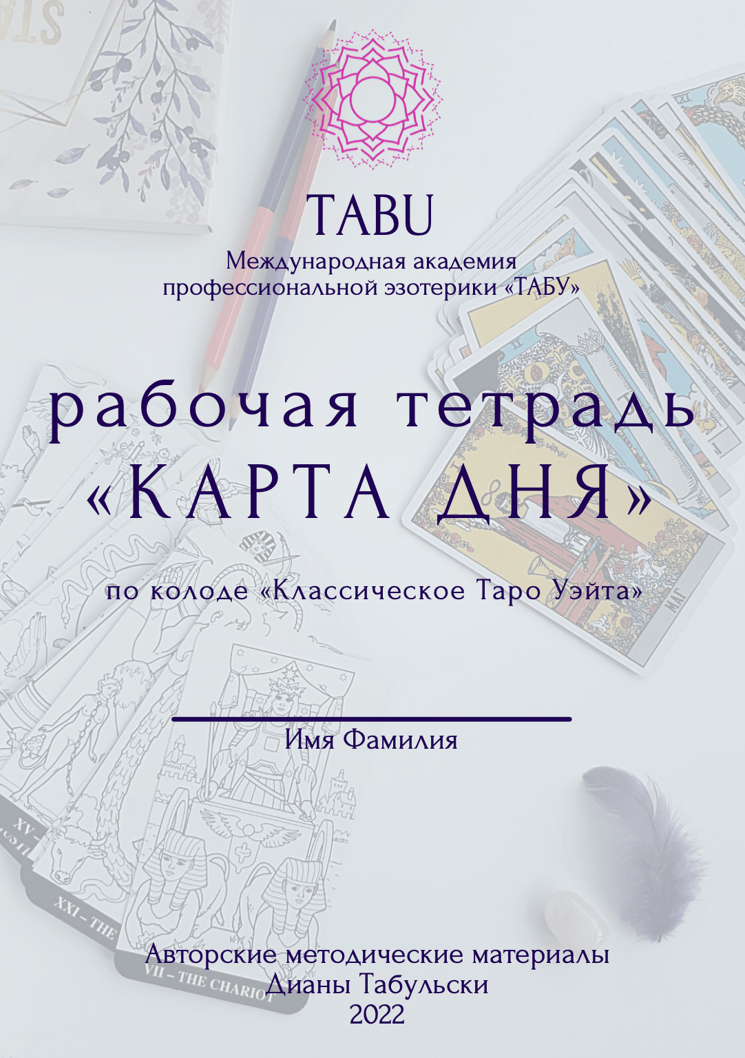 В качестве примера Рабочей тетради (Дневника Таро) я прикрепляю страничку с Рабочей тетради, которую мы используем с учениками моего курса «Интуитивное таро»
