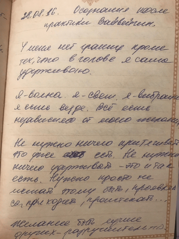 У меня нет границ, кроме тех, что я удерживаю в своей голове Я - волна, я - свет, я - вибрация. Я есть везде, я бесконечна Все есть, независимо от моего желания Не нужно ничего притягивать - все уже есть Не нужно ничего удерживать - это и так есть Нужно просто не мешать этому быть,... Читать далее →